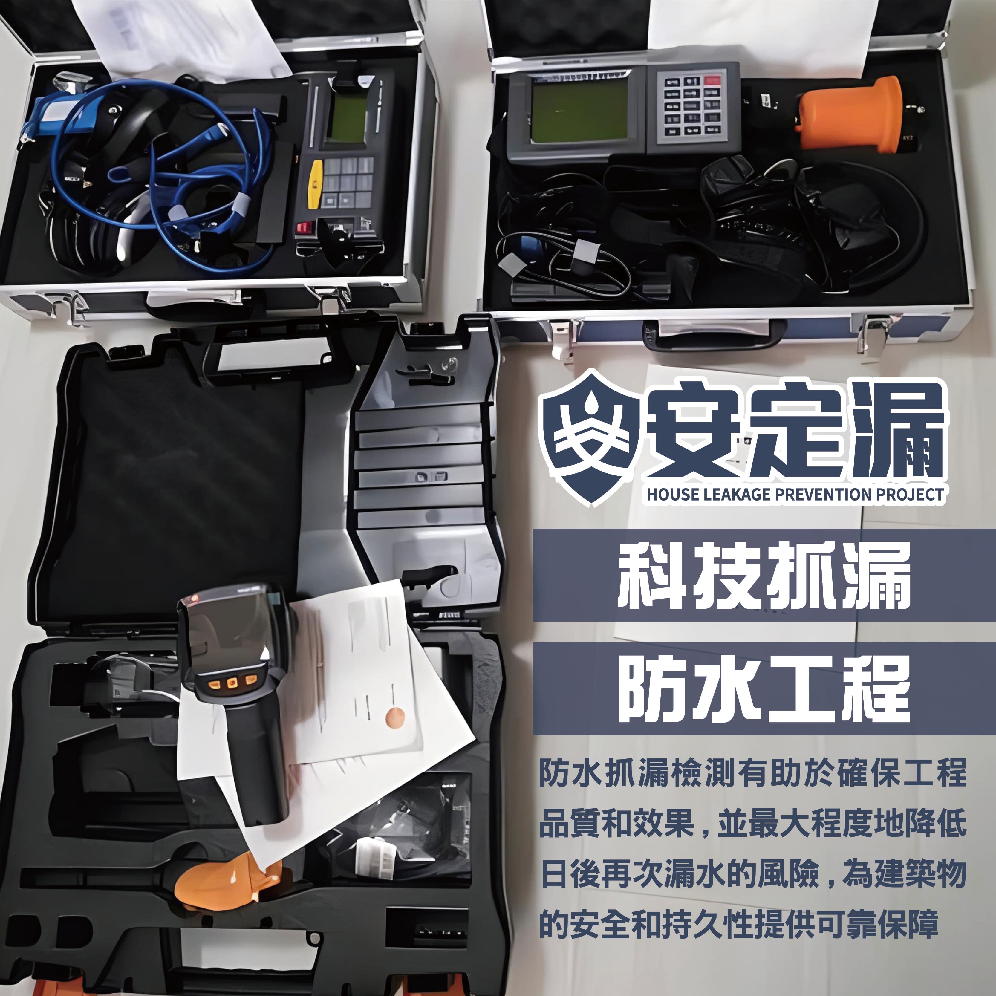 在防水抓漏的工作中,儀器的應用至關重要。有些漏水問題可能因為地形或結構的複雜性而難以用傳統的方式準確掌握,這時候使用高科技儀器就變得十分關鍵。透過高科技儀器,我們能夠更精準、快速地定位漏水點,進而針對性地進行修復,有效解決糾紛,完成補漏工程。這種專業的儀器就像醫生的診斷工具,能夠幫助我們對漏水問題進行精準診斷,找出病因,從而針對性地制定治療方案,徹底解決問題,杜絕後患。
